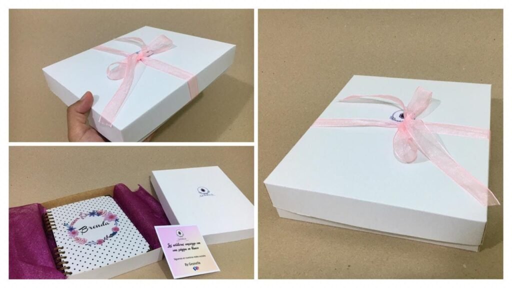 Otra opción es inspirarte en diseños de cajas japonesas furoshiki, que combinan cartón reciclado con tela para un acabado elegante. Si buscas algo más minimalista, el cartón marrón natural con un cordón de yute puede dar un toque rústico y moderno a tu regalo.